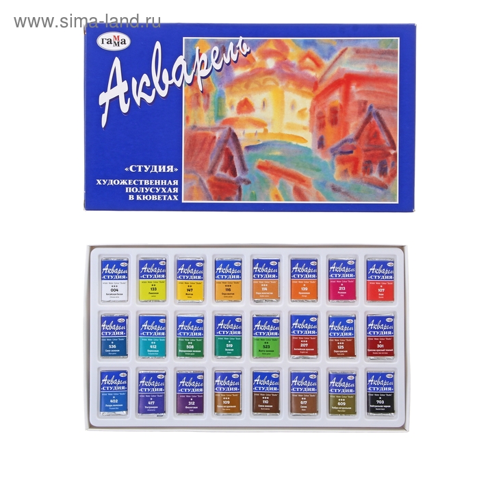 Акварель художественная в кюветах, 24 цвета х 2.5 мл, Гамма "Студия", 215001