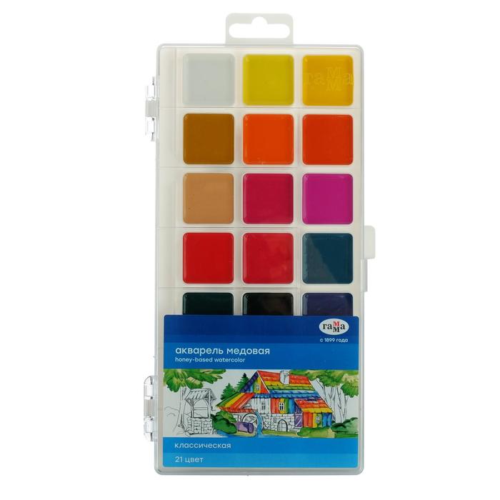 Акварель 21 цвет Гамма "Классическая", медовая, без кисти, пластик