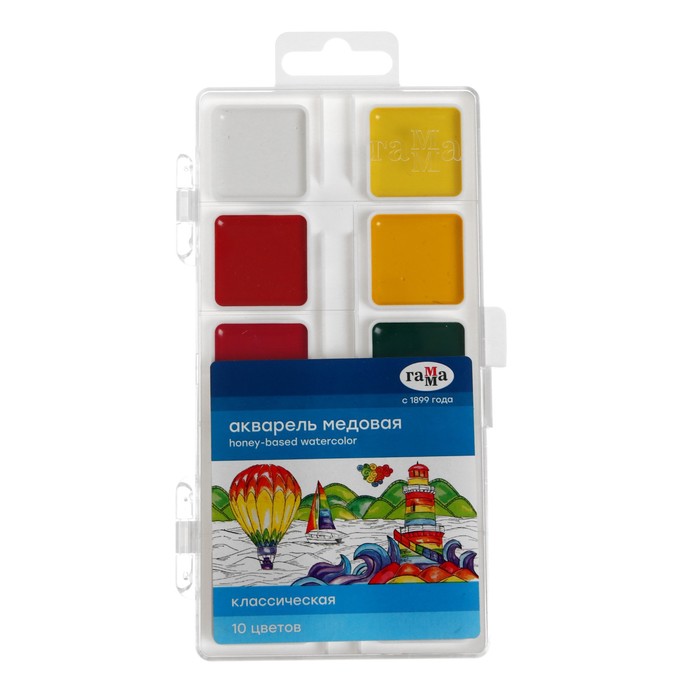 Акварель 10 цветов "Гамма" "Классическая", медовая, без кисти, пластик