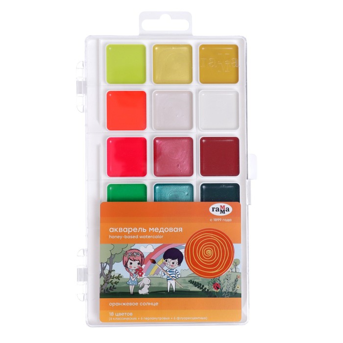 Акварель 18 цветов "Оранжевое солнце", без кисти