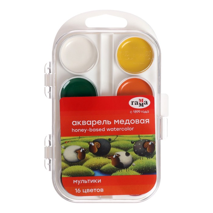 Акварель 16 цветов, "Гамма" "Мультики", без кисти, в пластиковой коробке