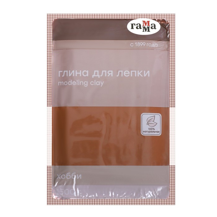 Глина натуральная для лепки 1500 г, цвет терракотовый, Гамма "Хобби", (подходит для обжига), вакуумированная, /Испания/