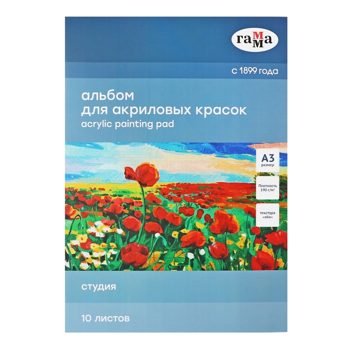 Альбом для акрила, А3, Гамма "Студия" 10 листов, 190г/м, на склейке, текстура "лен"