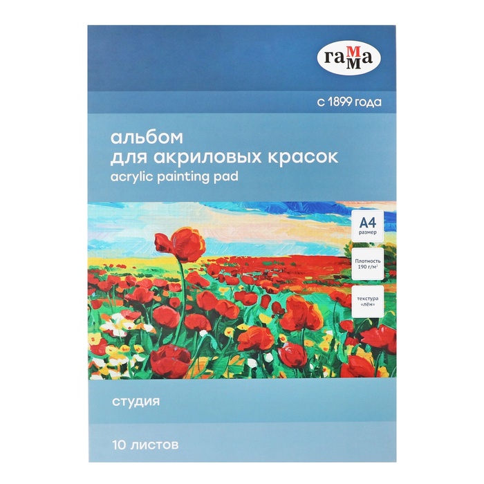 Альбом для акрила, А4, Гамма "Студия" 10 листов, 190г/м, на склейке, текстура "лен"
