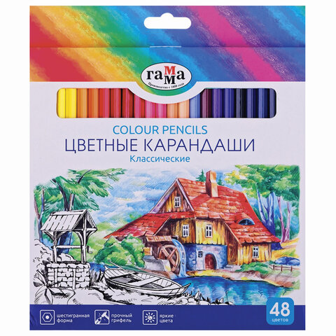 Карандаши цветные ГАММА "Классические", 48 цветов, шестигранные, натуральное дерево, 210119_01