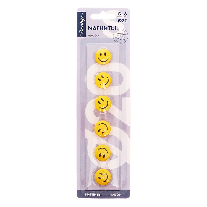 Магниты для досок "Смайлики" 20 мм, 6 штук, GLOBUS желтые