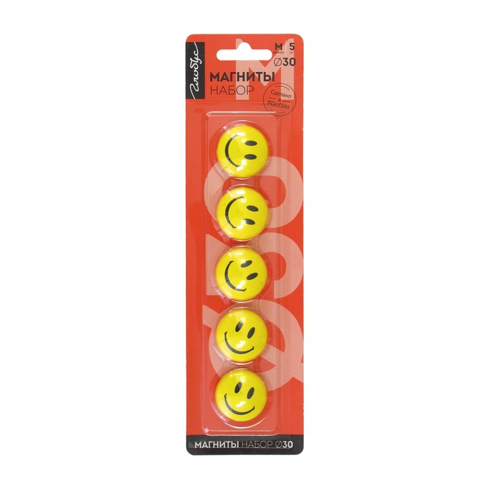 Магниты для досок "Смайлики" 30 мм, 5 штук, GLOBUS желтые