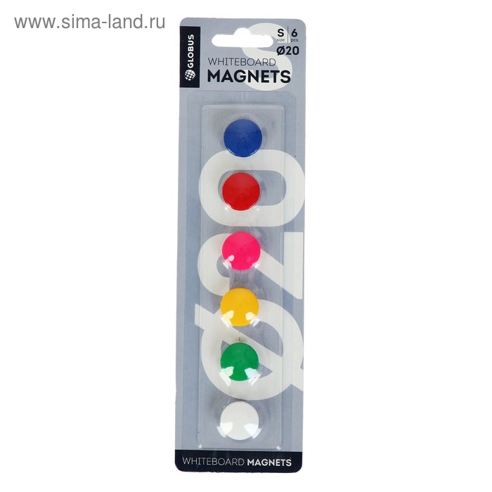 Магниты для досок Globus 20 мм, 6 штук, цветные, в блистере