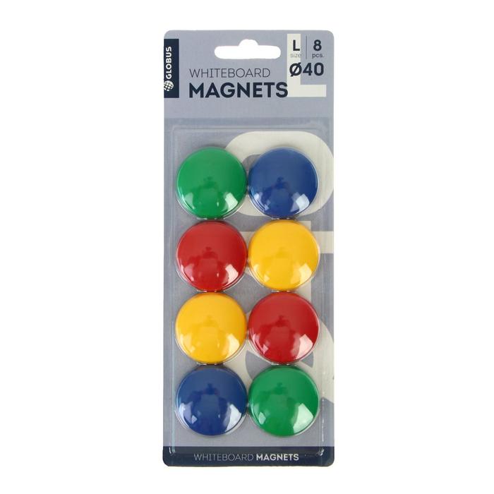 Магниты для досок 40 мм, 8 штук, GLOBUS цветные, в картонном блистере