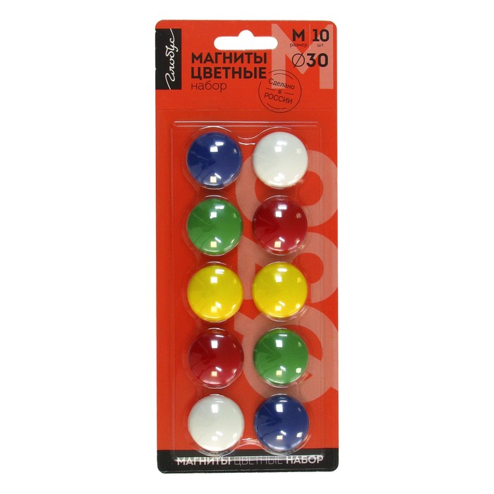 Магниты для досок 30 мм, 10 штук, GLOBUS цветные, в блистере