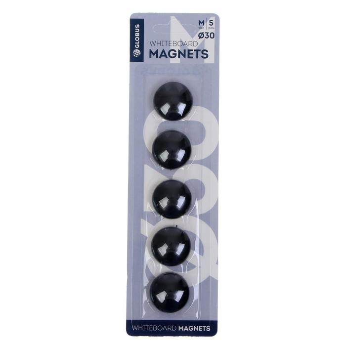Магниты для досок Globus 30 мм, 5 штук, чёрные, в блистере