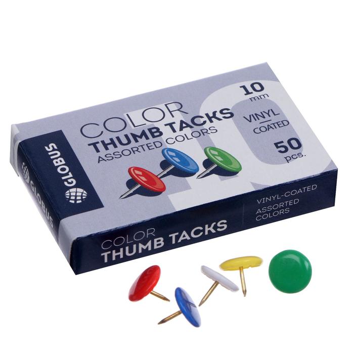 Кнопки канцелярские GLOBUS, 50 шт., 10 мм, цветные