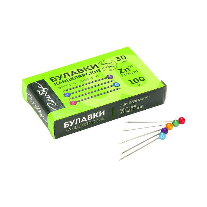 Булавки с цветной головкой GLOBUS, 100 шт., 30 мм