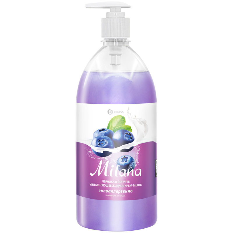 Мыло-крем жидкое Grass "Milana. Черника в йогурте", увлажняющее, с дозатором, 1л