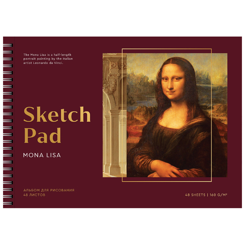 Альбом для рисования 48л., А4, на гребне Greenwich Line "Great painters. Da Vinci", 160г/м2, мат. ламинация, тисн. фольгой, перфорация, жест. подложка