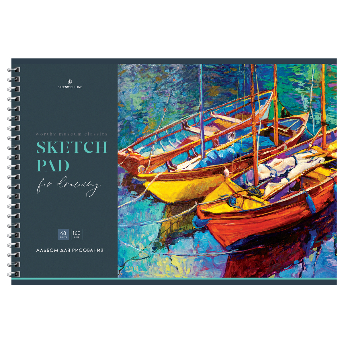 Альбом для рисования 48л., А4, на гребне Greenwich Line "Venezia", 160г/м2, мат. ламинация, перфорация на отрыв, жесткая подложка