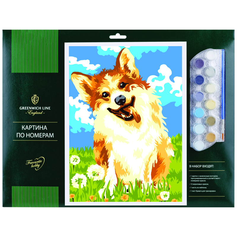 Рисование по номерам Greenwich Line "Забавный корги" А3, с акриловыми красками, картон, европодвес