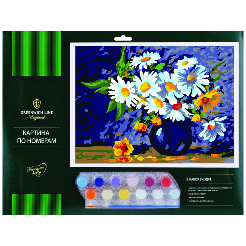 Рисование по номерам Greenwich Line "Ромашки" А3, с акриловыми красками, картон, европодвес