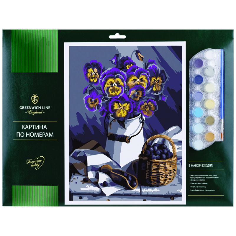 Рисование по номерам Greenwich Line "Фиалки" А3, с акриловыми красками, картон, европодвес