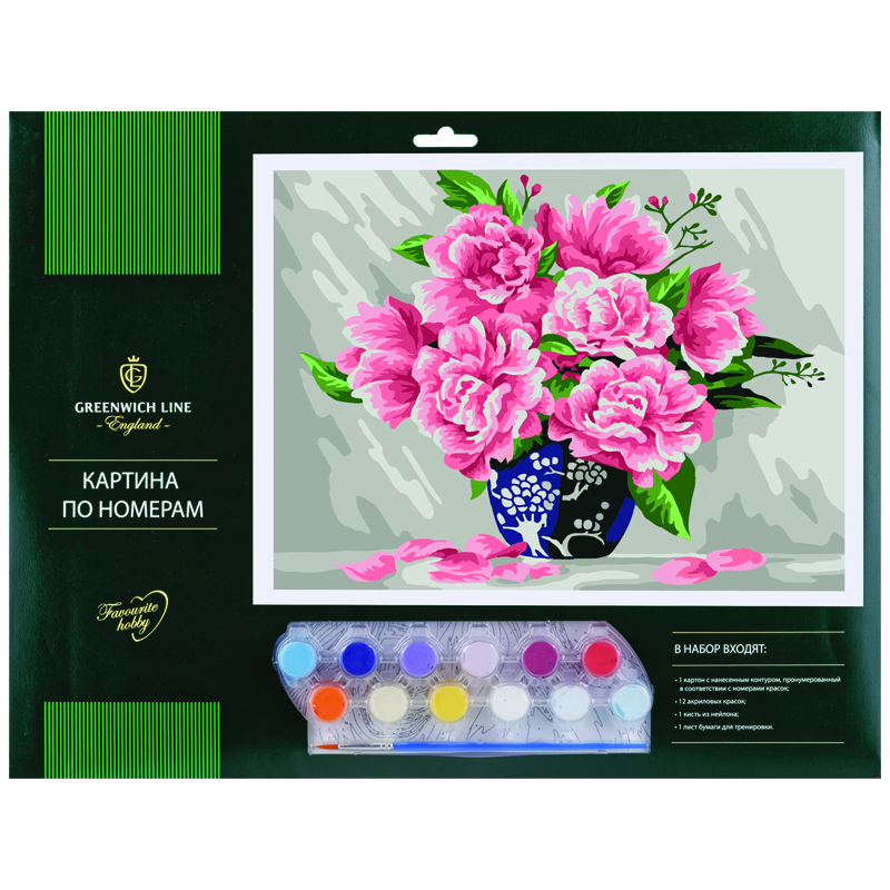 Рисование по номерам Greenwich Line "Пионы" А3, с акриловыми красками, картон, европодвес