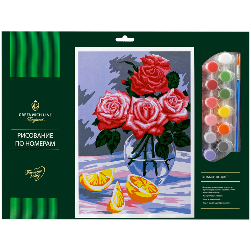 Рисование по номерам Greenwich Line "Розы и апельсины" А3, с акриловыми красками, картон, европодвес