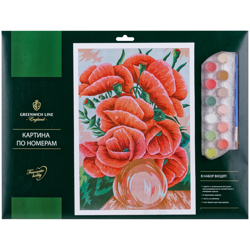 Картина по номерам Greenwich Line "Маки" А3, с акриловыми красками, картон, европодвес