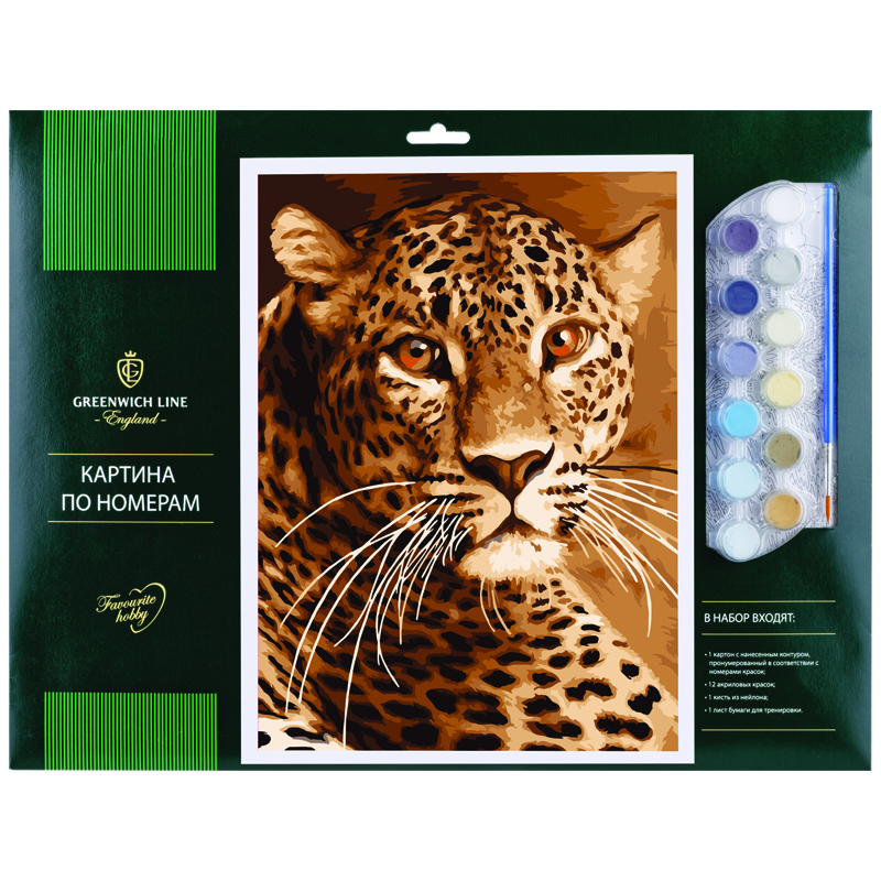 Рисование по номерам Greenwich Line "Леопард" А3, с акриловыми красками, картон, европодвес
