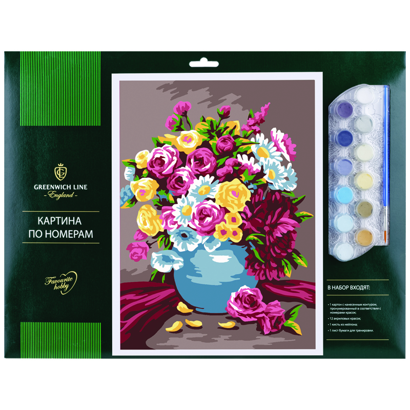 Рисование по номерам Greenwich Line "Букет" А3, с акриловыми красками, картон, европодвес