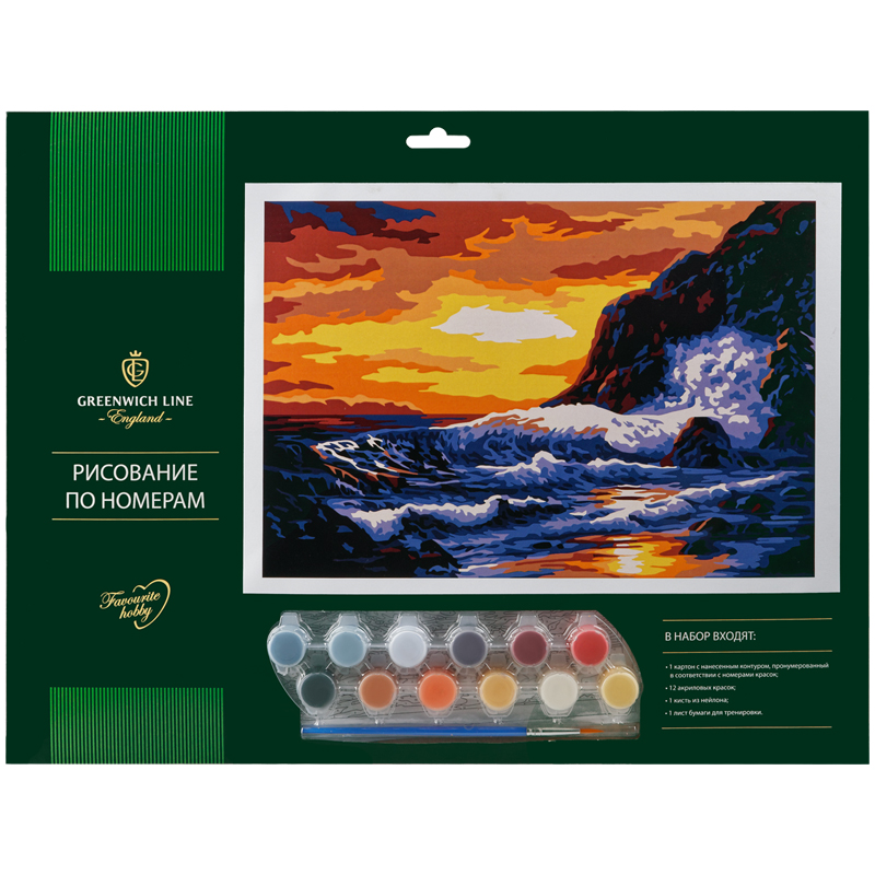 Рисование по номерам Greenwich Line "Закат на море" А3, с акриловыми красками, картон, европодвес