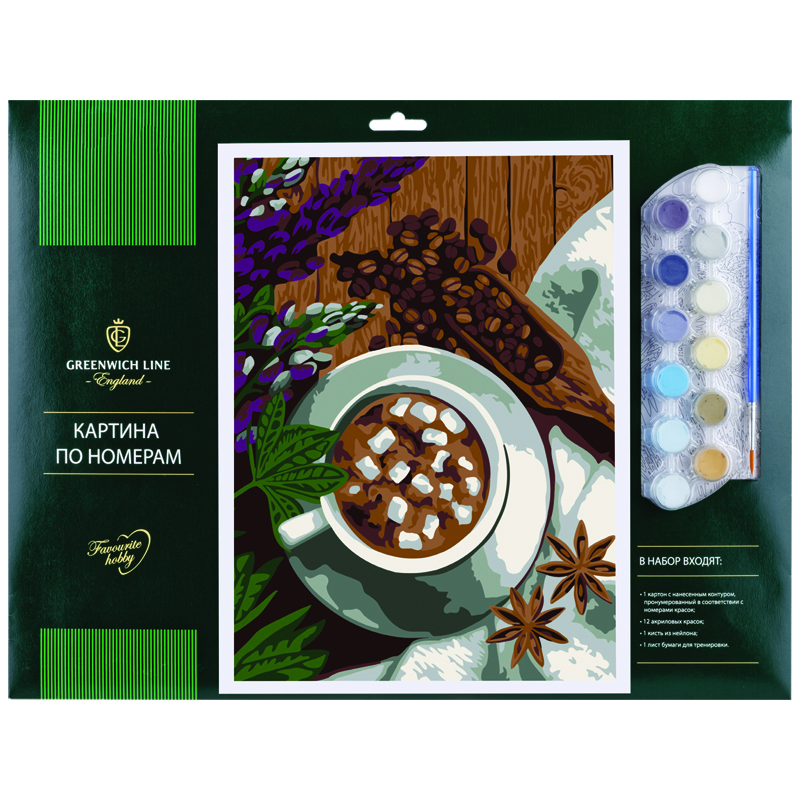 Рисование по номерам Greenwich Line "Ароматный кофе" А3, с акриловыми красками, картон, европодвес