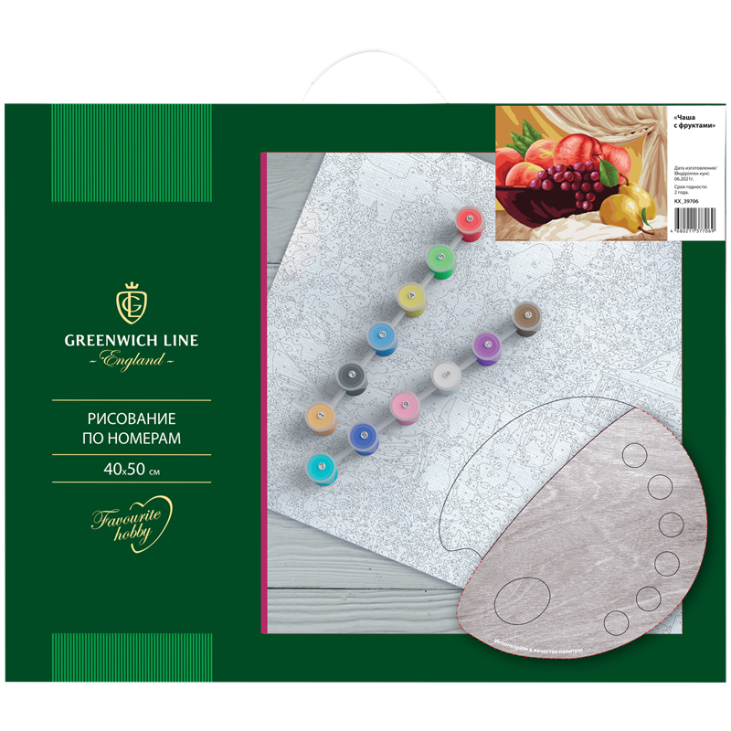 Рисование по номерам Greenwich Line "Чаша с фруктами", 40*50см, с акриловыми красками, холст