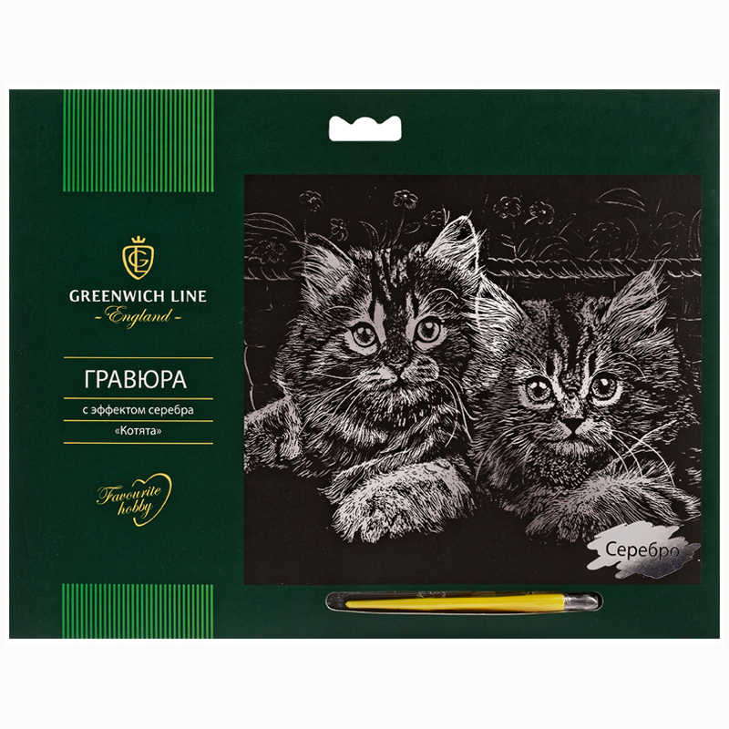 Гравюра с эффектом серебра Greenwich Line "Котята", 29*21см