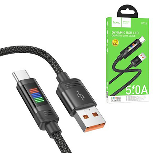Кабель сетевой USB - Type-C " Hoco " U126 Lantern чёрный, круглый, 1,2м, 5A, ткань