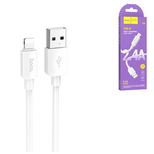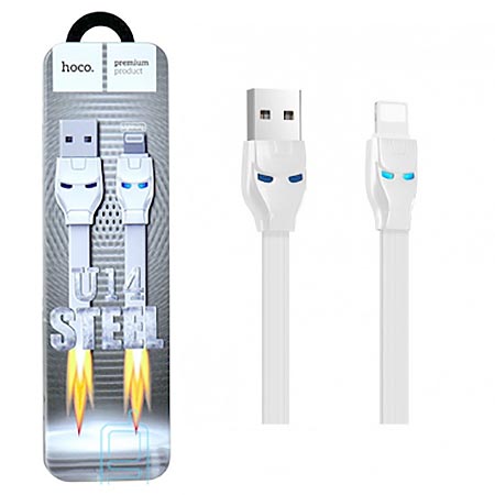Кабель сетевой USB - Lightning " Hoco " U14 Steel man белый, плоский, 1,2м, 2,4А, силикон, металлическая коробка