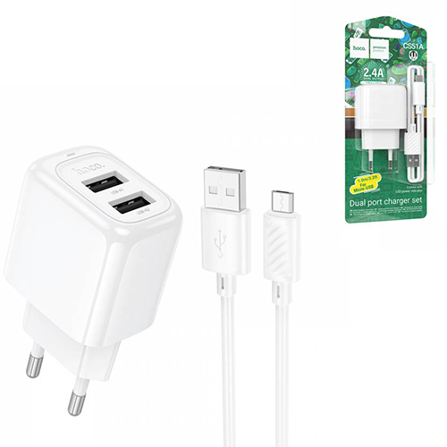 Зарядное устройство сетевое " Hoco " CS51A Surplus белый, 2,4А, 2 USB, пластик, кабель micro USB, 1м