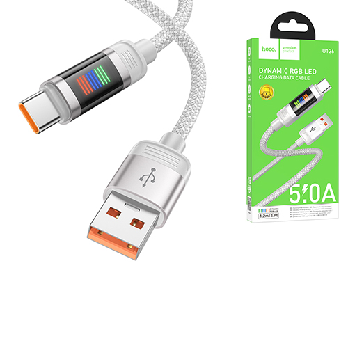 Кабель сетевой USB - Type-C " Hoco " U126 Lantern серебряный, круглый, 1,2м, 5A, ткань
