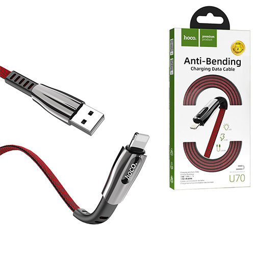 Кабель сетевой USB - Lightning " Hoco " U70 Splendor красный, плоский, 1,2м, 3,0А, нейлон