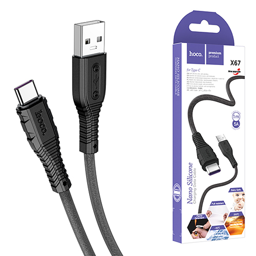 Кабель сетевой USB - Type-C " Hoco " X67 Nano черный, круглый, 1м, 5.0A, силикон
