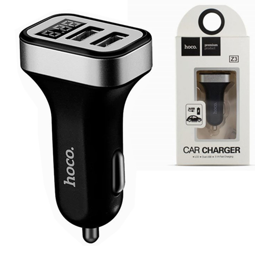 Блок питания автомобильный " Hoco " Z3 черный, 3,1А, 2 USB, дисплей отображает мощность заряда в режиме реального времени, пластик (кабель в комплект не входит)
