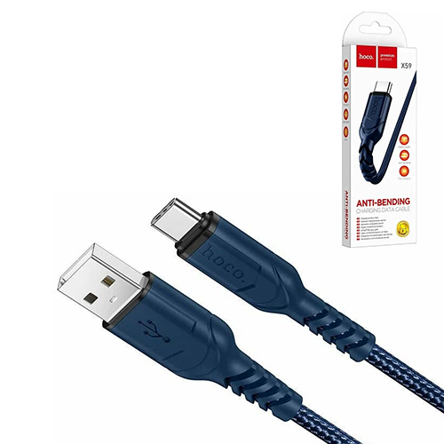 Кабель сетевой USB - Type-C " Hoco " X59 Victory синий, круглый, 1м, 3.0A, ткань
