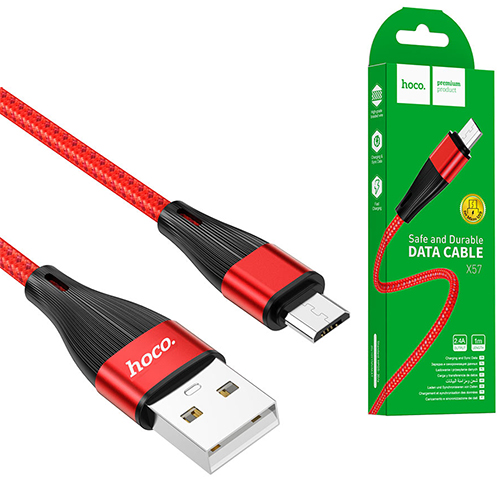 Кабель сетевой USB - micro USB " Hoco " X57 Blessing красный, круглый, 1м, 2,4А, нейлон