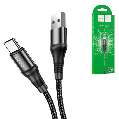 Кабель сетевой USB - Type-C " Hoco " X50 черный, круглый, 1м, 3A, ткань