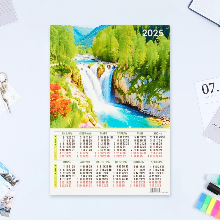 Календарь листовой А3 "Водопад" 2025 год, картон, 30 х 42 см