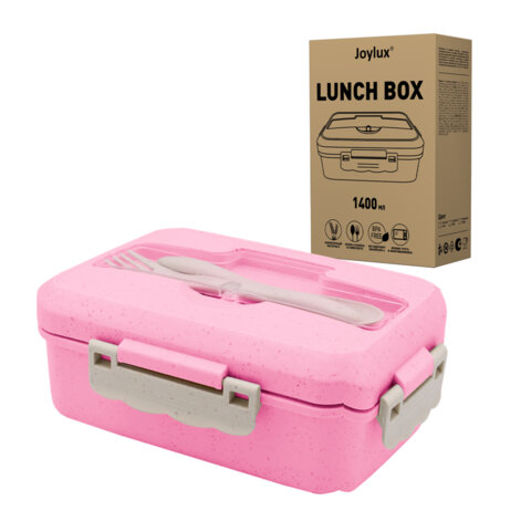Ланч-бокс контейнер 2 секции 3+1 отделение 1,4л ложка, вилка 7х21х14см, розовый JOYLUX, 609348