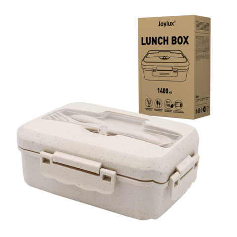 Ланч-бокс контейнер 2 секции 3+1 отделение 1,4л ложка, вилка 7х21х14см, бежевый JOYLUX, 609349