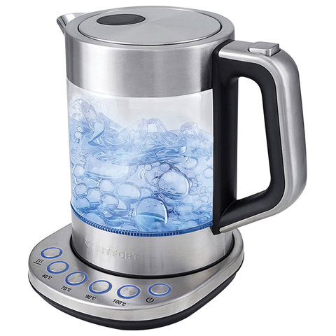Чайник KITFORT КТ-648, 1 л, 2200 Вт, закрытый нагревательный элемент, ТЕРМОРЕГУЛЯТОР, стекло, серебристый