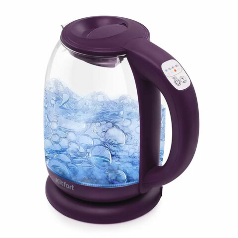 Чайник KITFORT КТ-640-5, 1,7 л, 2200 Вт, закрытый нагревательный элемент, ТЕРМОРЕГУЛЯТОР, стекло, фиолетовый