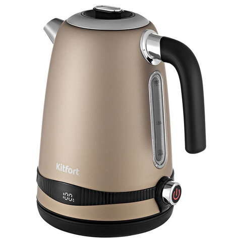 Чайник KITFORT КТ-6121-4, 1,7 л, 2200 Вт, закрытый нагревательный элемент, LED-дисплей, ТЕРМОРЕГУЛЯТОР, сталь, бежевый