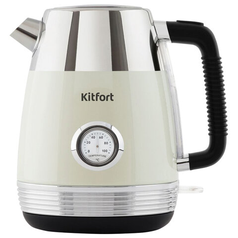 Чайник KITFORT КТ-633-3, 1,7 л, 2200 Вт, закрытый нагревательный элемент, термометр, пластик/металл, бежевый