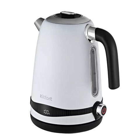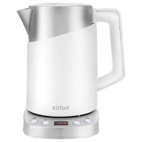 Чайник KITFORT КТ-6121-2, 1,7 л, 2200 Вт, закрытый нагревательный элемент, LED-дисплей, ТЕРМОРЕГУЛЯТОР, сталь, белый